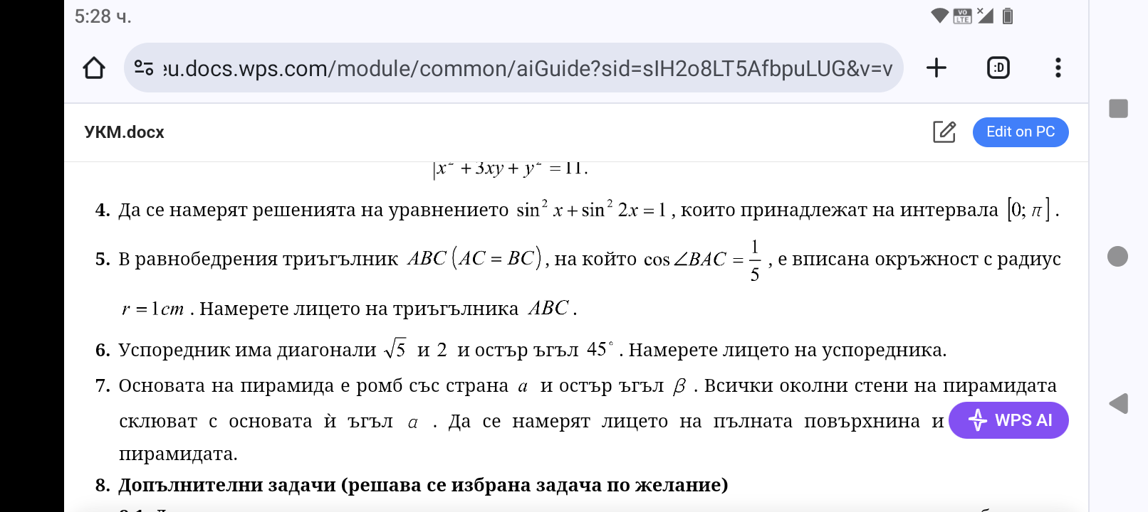 В задачи с ъглополовящи обикновено е необходимо да се използват свойства на ъглови отношения, за да се намери размерът на определени ъгли. Например, ако знаем, че вътрешните и външните ъглополовящи представят съотношения на равенство, можем да изразим неизвестни ъгли чрез дадените и да намерим търсеното. Важно е да приложите активно разликите и свойствата на подобни триъгълници при решаването.