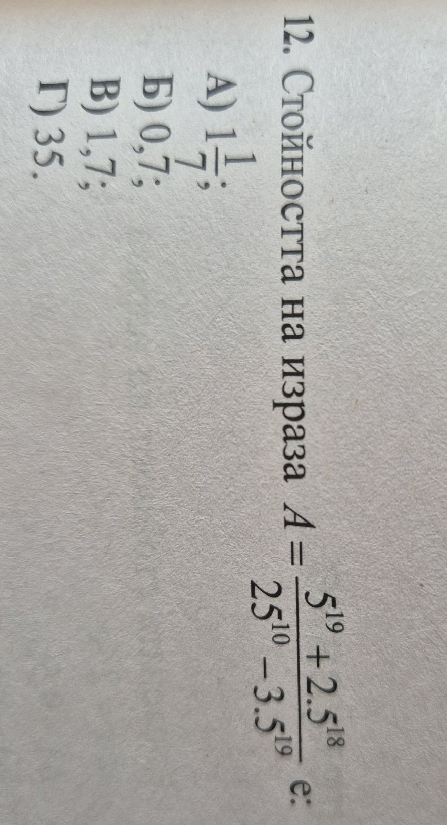 Ако ще изхождаме от дадените отговори, можем и да си сметнем най-малката стойност на израза, която не е 0. Все пак имаме всяко а, цяло число.