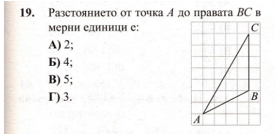 Перпендикулярът от т.А се пресича с продължението на ВС на четири квадратчета от т.А.