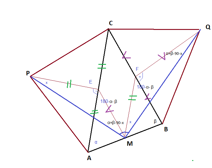 <PMQ=<PME+<EMF+<FMQ=α+β-90-x+180-(α+β)+x=90