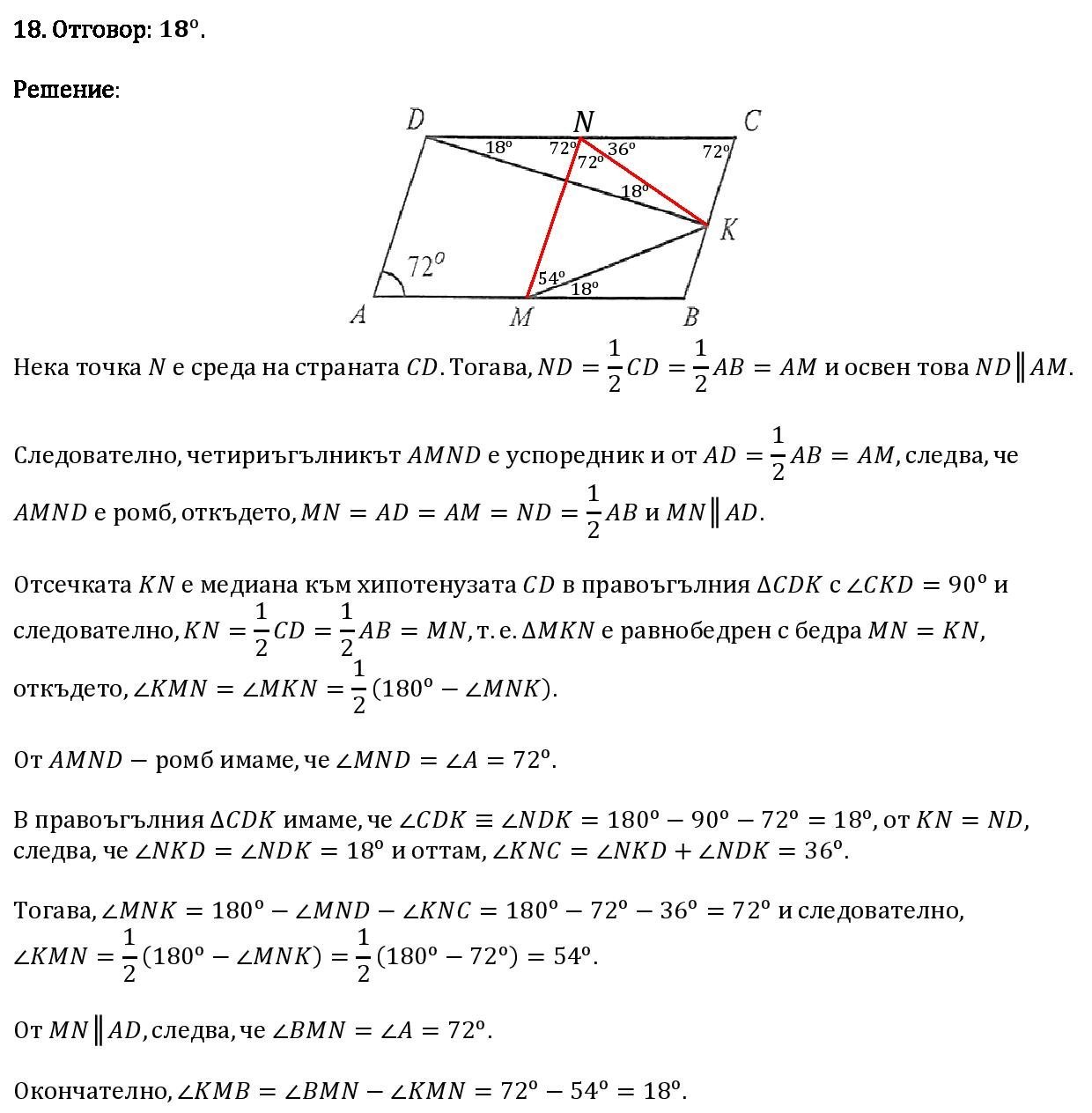 Лицето на АМN= л. ВМN от AN=NB, обща височина през М.