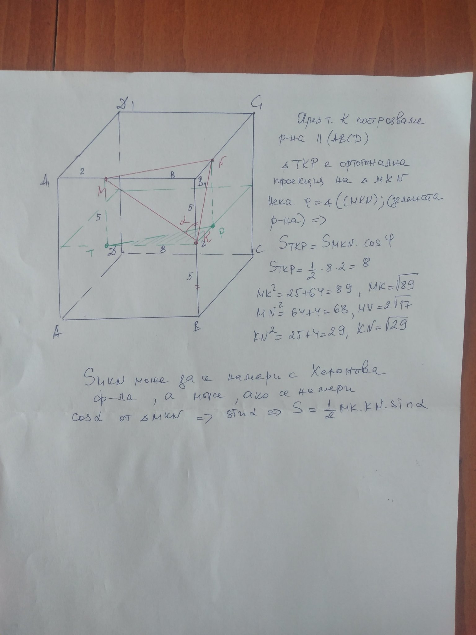 Не си причиних Хероновата формула и лесно получих отговора! Благодаря ти още веднъж!
