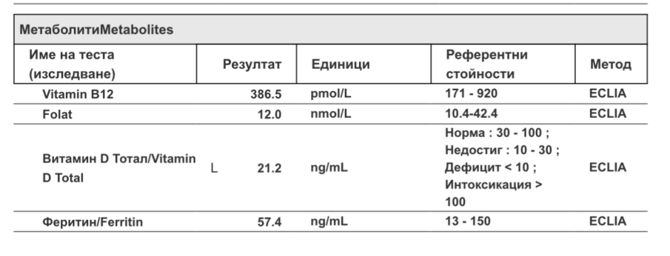 Това добър резултат ли е за вит. Д? През април беше 25 ngml. Първоначално пих по 5000, след това по 10000, 15000 и от 5 дена по 20000. Пет-шест дни преди изследването спрях да приемам вит. Д, а вит. В12 от над две седмици.