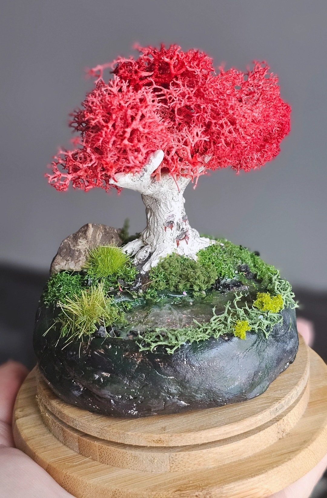 Беше за подарък на голям фен на "Игра на тронове" и е изцяло с подръчни материали, каквото имах у нас - глина, скандинавски мъх, акрилни боички. Има си и стъклен похлупак.