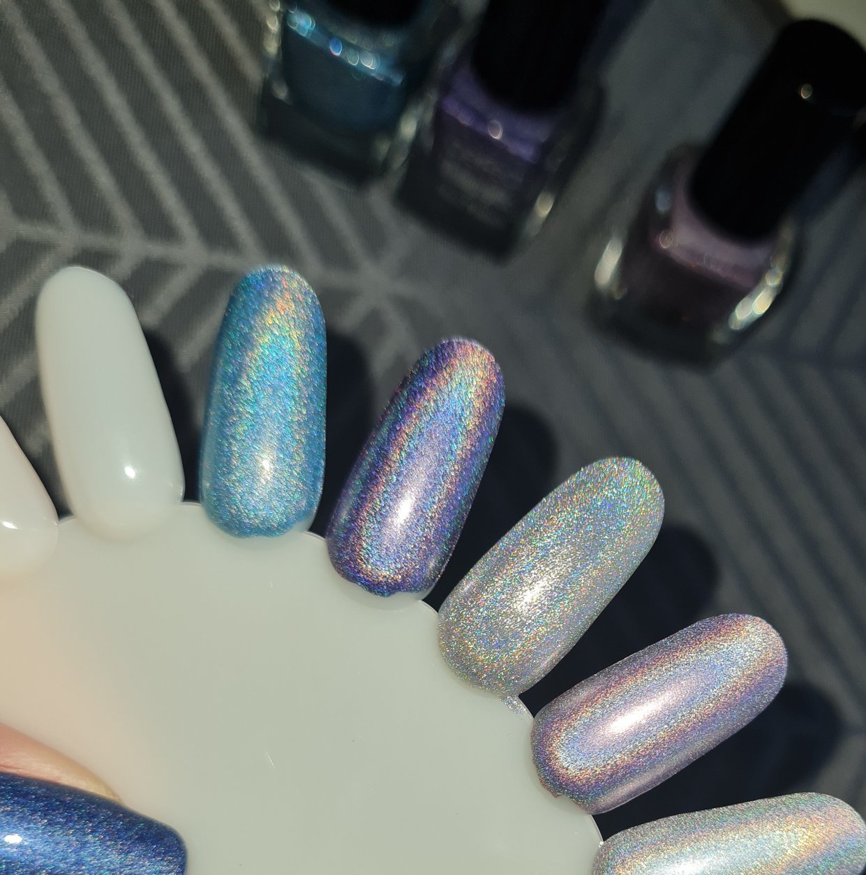 Аз имам доста холограми на Essie, които са с изразена дъга и на моите нокти са трайни.