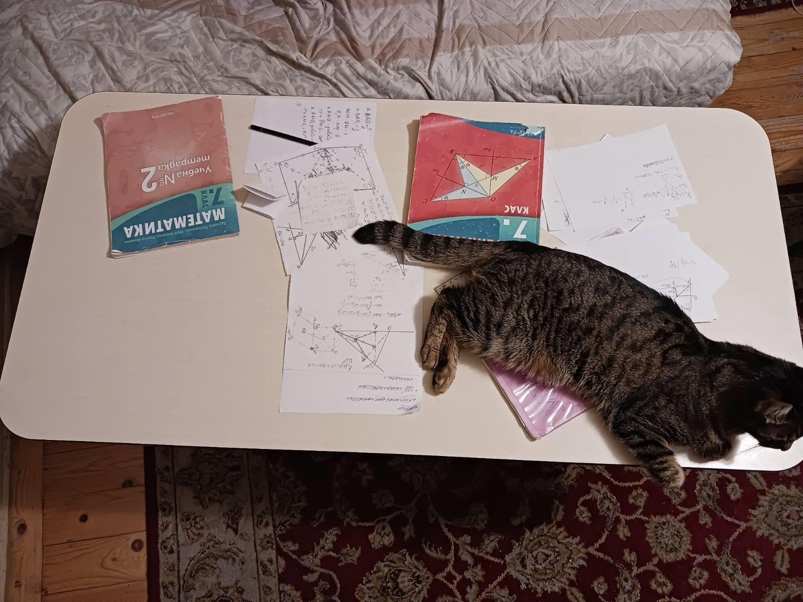 Тя, котката, гледам че върху някакви задачи е заспала, ама да не се падат тези, че като гледам чертежа и ми става лошо Satisfied