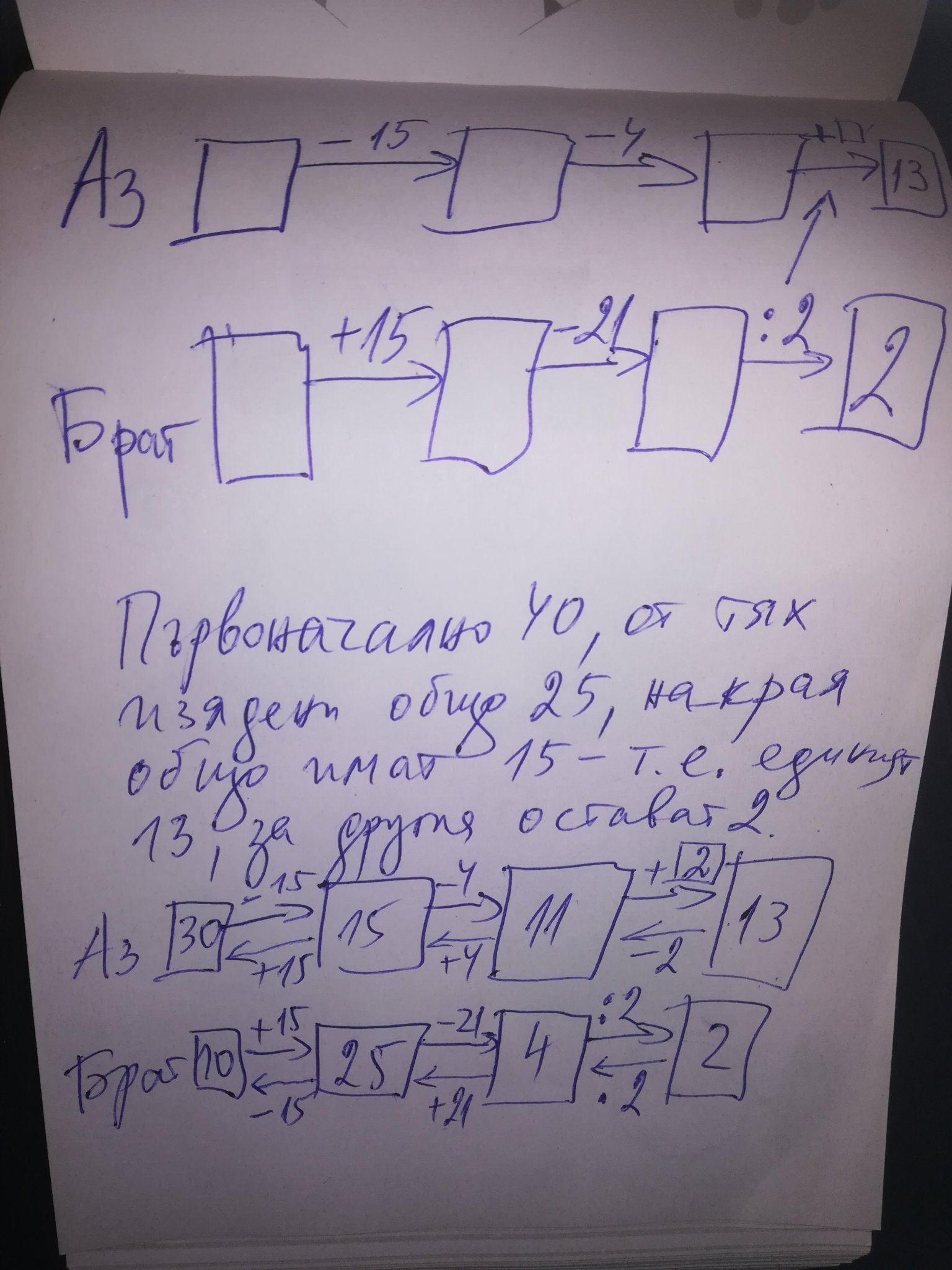 С брат ми имахме по определен брой ягоди – общо 40. Дадох на брат си 15 ягоди, след което той