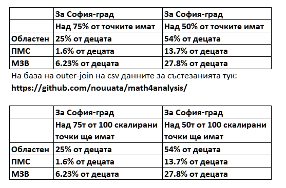 Резултатите от МзВ в София и другите големи градове могат да повлияят на класирането в НПМГ и СМГ, тъй като критериите за прием могат да варират всяка година. Обикновено резултати около 22 точки са достатъчни за по-голямата част от кандидатите, тъй като нивото на трудност се е увеличило през предходните години.