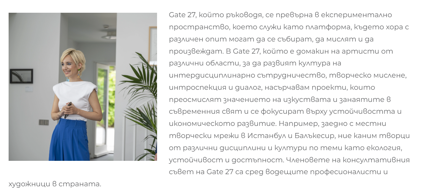 Тя е интелектуалец, топ CV, мениджър, активист, довежда проекти за социална и екологична устойчивост до високи финанси и предприемачество.