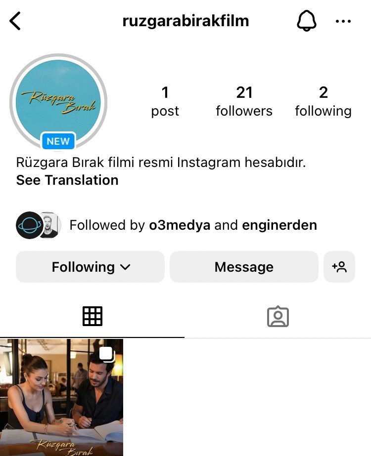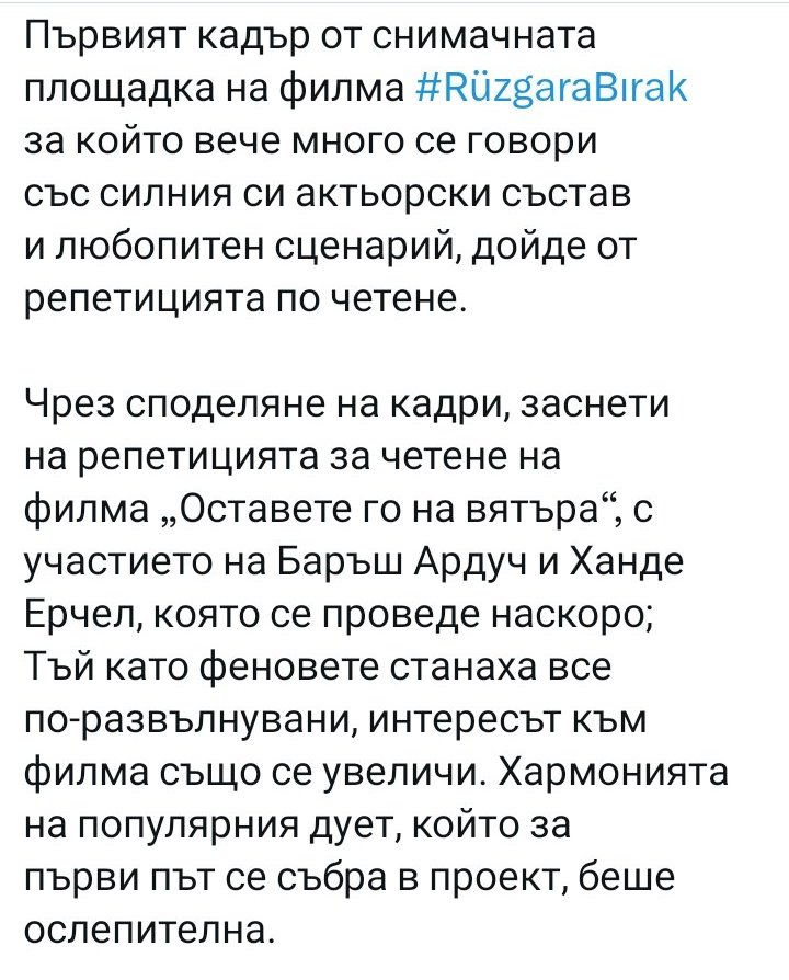 Филмът на Ханде и Баръш Rüzgara Bırak  вече има официална страница в Инстаграм Wink