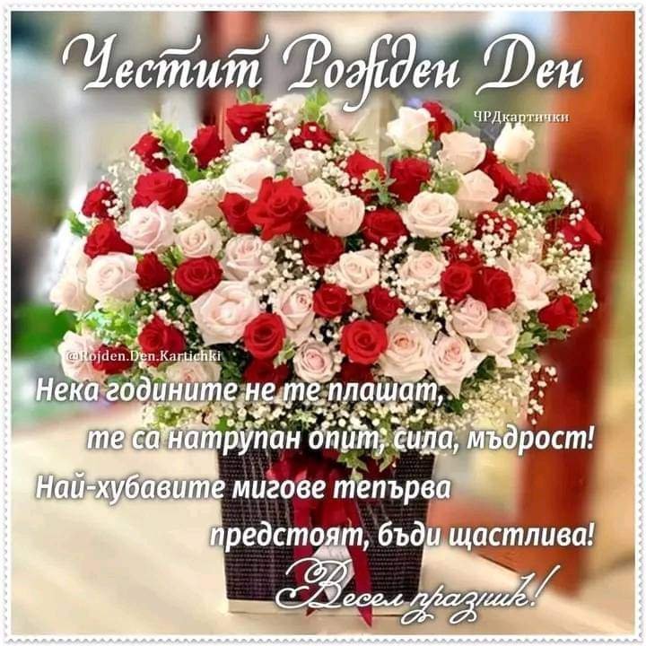 Честит рожден ден на Krem4et0! С нея сме родени в един и същи ден! Simple Smile Получих тази картичка,но пожеланията са прекрасни! Сега й я пращам на нея! Simple Smile Здраве, щастие и късмет! Simple Smile