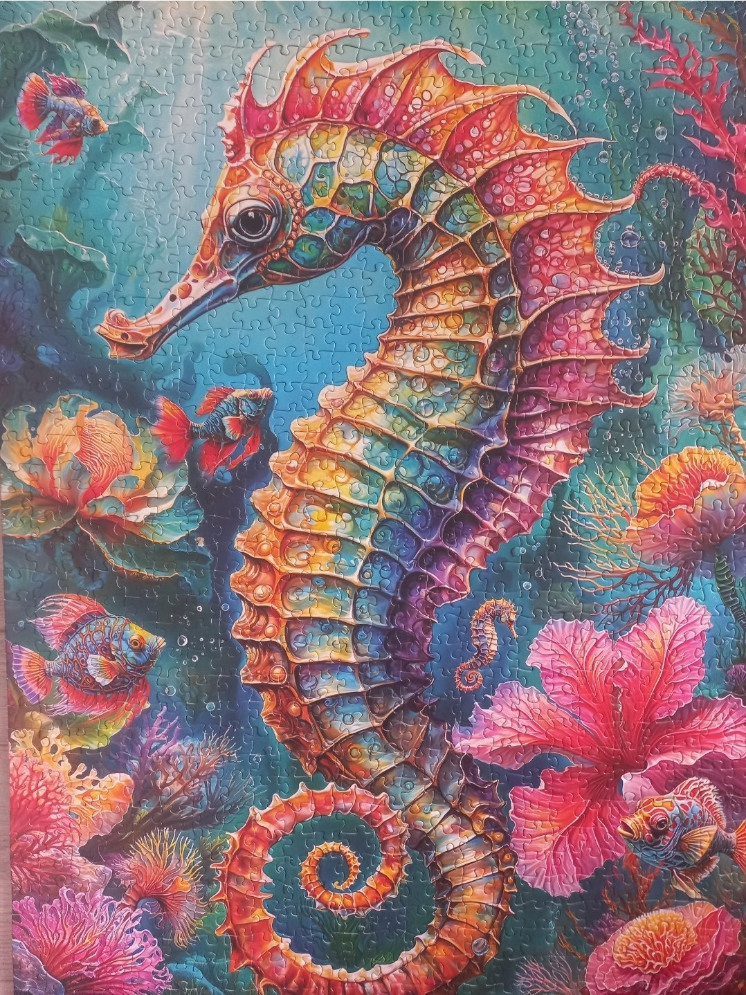 Това е Seahorse на Cherry Pazzi, 1000 части. Ще го продавам, така че ако някой го иска, да ми пише. Ако няма желаещи, ще го пусна във Фейсбук. Качеството не е много добро, има поне 4-5 леко разслоени парченца и едно, което е направо обелено: