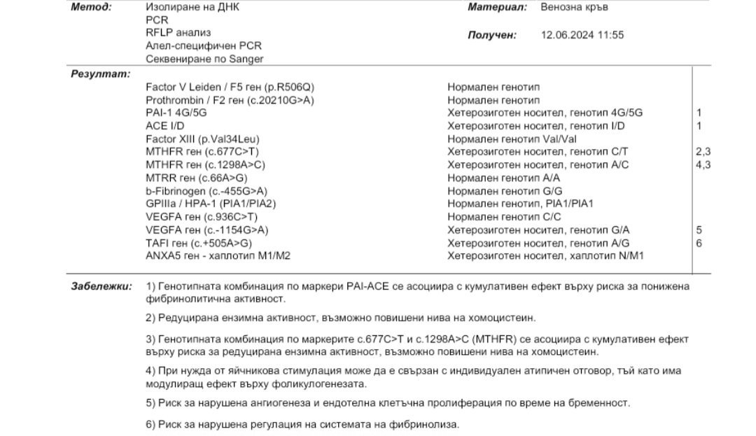 Момичета, та мен ми излязоха резултатите за тромбофилията, обаче изобщо нямам представа какво показват. Утре сутрин имам час за преглед, но ще съм много благодарна, ако някоя от вас може да ги разчете, за да знам какво да очаквам и дали е нещо сериозно. Heart