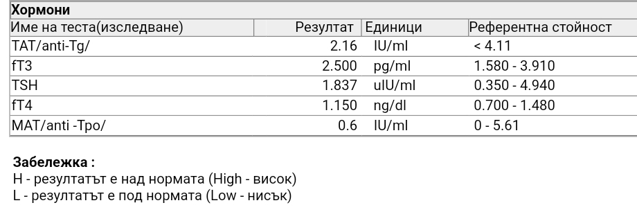 Резултатите показват хипофункция на щитовидната жлеза, тъй като TSH е 6 (високо), докато FT3 и FT4 са в нормални граници. Изследванията на антитялото (MAT и TAT) също са важни и показват наличие на автоимунно заболяване, характерно за Хашимото. Важно е да следвате указанията на ендокринолога си и да приемате предписаните лекарства, за да регулирате хормоналния баланс. Резултатите от изследванията показват нивата на FT3, FT4 и TSH, които са ключови показатели за функционирането на щитовидната жлеза. Например намаленото TSH (под нормални граници) може да индикира хиперфункция на жлезата, докато ниските стойности на FT4 и FT3 може да показват хипофункция. Важно е да се следят тези показатели и да се регулира дозировката на хормоналните препарати, като Euothyrox, в зависимост от резултатите.