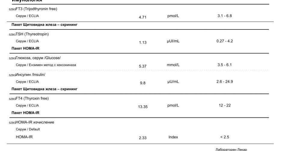 Резултатите показват хипофункция на щитовидната жлеза, тъй като TSH е 6 (високо), докато FT3 и FT4 са в нормални граници. Изследванията на антитялото (MAT и TAT) също са важни и показват наличие на автоимунно заболяване, характерно за Хашимото. Важно е да следвате указанията на ендокринолога си и да приемате предписаните лекарства, за да регулирате хормоналния баланс. Резултатите от изследванията показват нивата на FT3, FT4 и TSH, които са ключови показатели за функционирането на щитовидната жлеза. Например намаленото TSH (под нормални граници) може да индикира хиперфункция на жлезата, докато ниските стойности на FT4 и FT3 може да показват хипофункция. Важно е да се следят тези показатели и да се регулира дозировката на хормоналните препарати, като Euothyrox, в зависимост от резултатите.