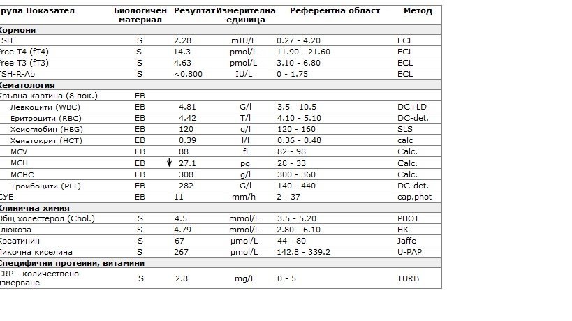 С подостър тиреоидит съм, уж в ремисия в момента, но последните ми изследвания са това