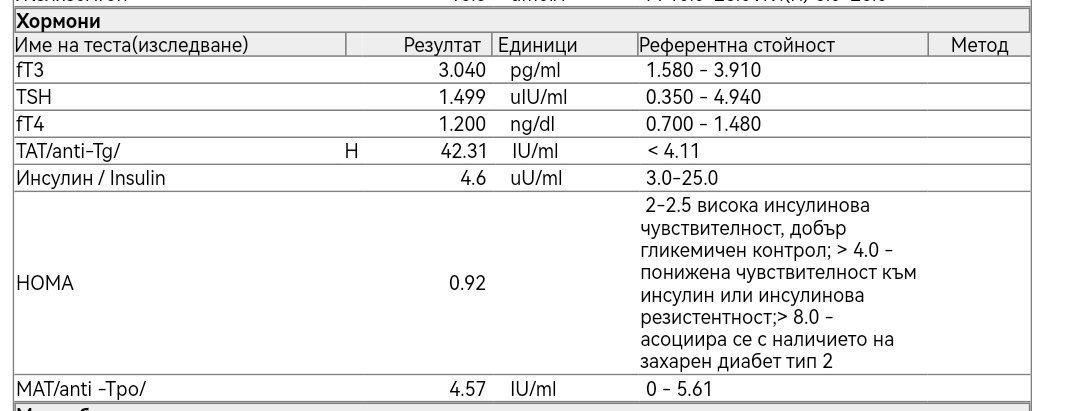 ПКК, желязо, холестерол, кръвна захар са в норма. Тотално изключих да проверя витамини. Д и Б12. Имам куп симптоми като кашлица, стягане в гърлото, болезнени лимфни възли в областта на шията от около седмица, мозъчна мъгла, повишен апетит, напълняване - не драстично, но нетипично за мен, периодични кризи, при които изпитвам нервност и стрелкащи болки в тялото. Миналата година прекарах вирусна инфекция, от която ми се объркаха доста неща, та не изключвам отключването на автоимунно заболяване или комбинация от такива. Естествено, имам час при ендокринолог с ехографско изследване, но ми е любопитно да видя мнението на хора, страдащи от проблеми с ЩЖ.