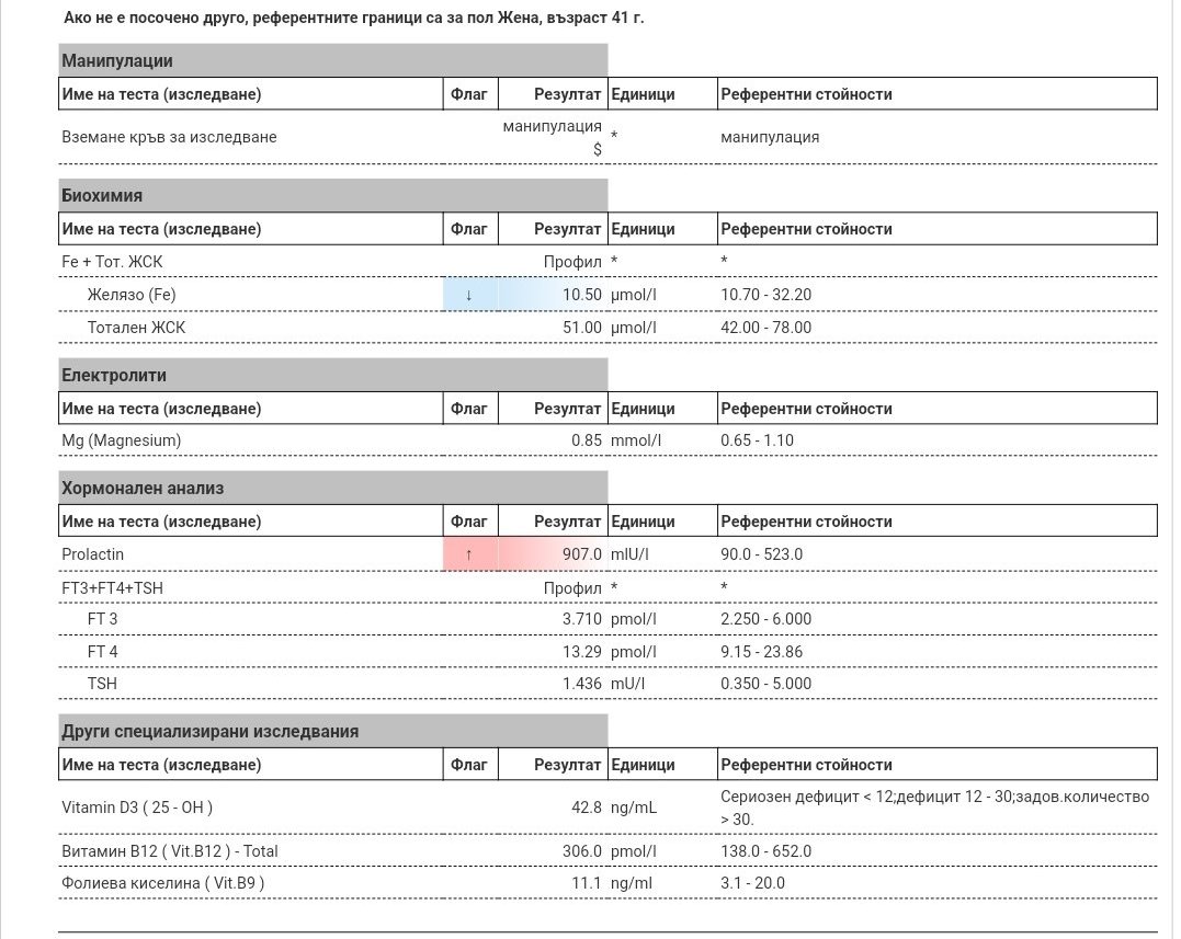 Там е работата, че нищо не съм променяла, не бих казала че спортувам, само малко повече ходене но едва ли има общо. Витамин Б12 съм го спряла от месец, нямам представа какво стана с това желязо...
