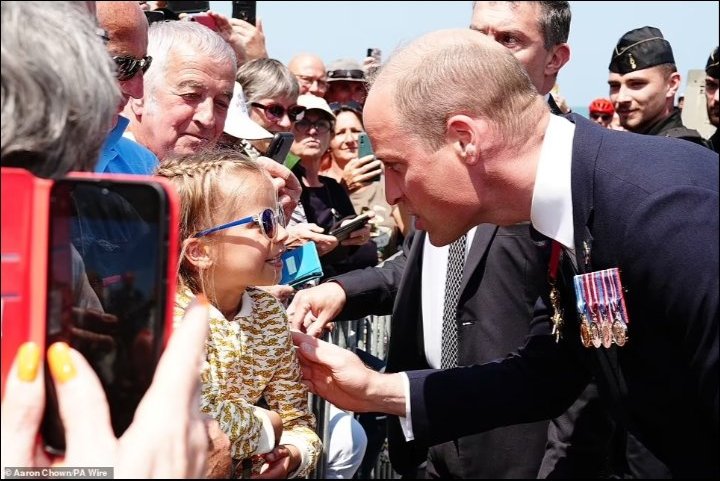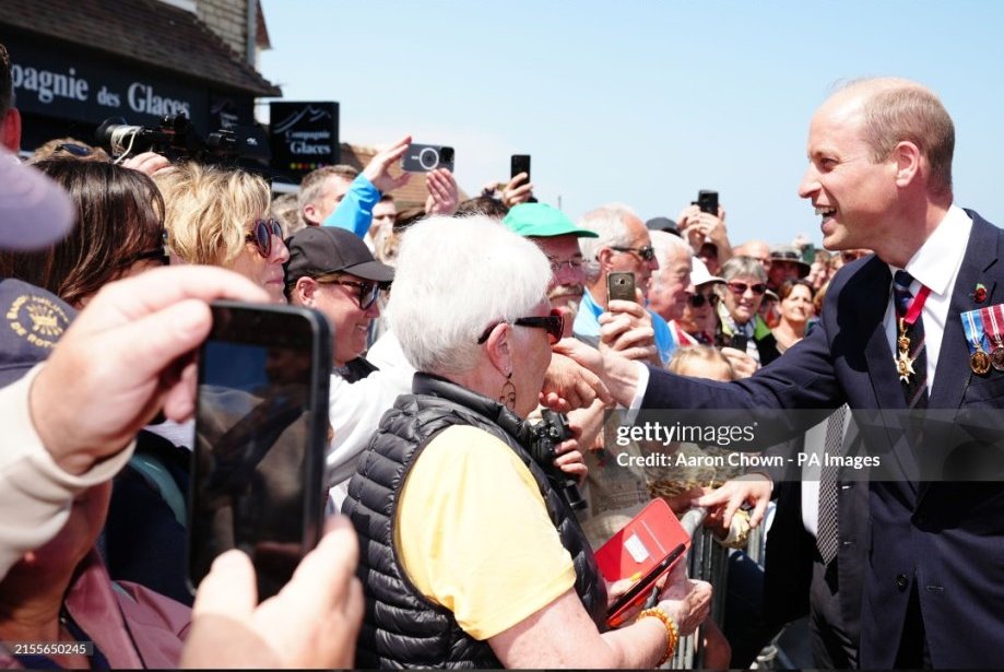 Принц Уилям направи изненадваща спирка - не беше по график - в Arromanches, където се срещна с ветерани и членове на обществеността, за да отбележи 80-ата годишнина от десанта на D-Day.