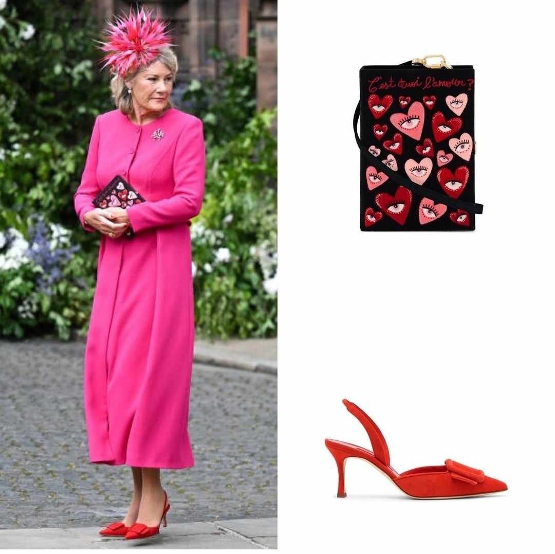 Свекървата е с чудесен розов тоалет. Обувките и чантата й са великолепни. Много стилна дама.