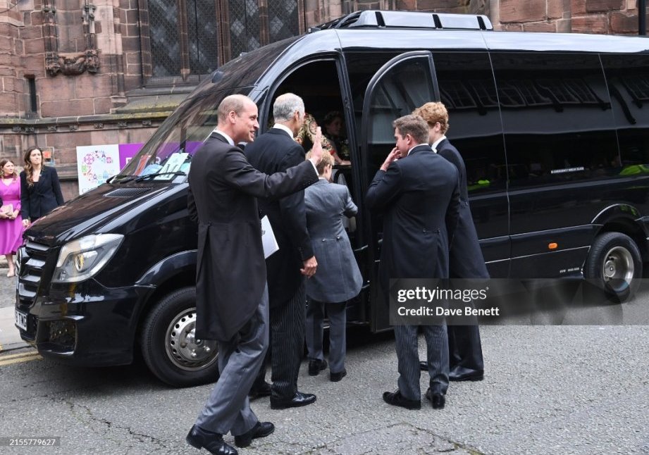 Уилям се вози с бучето заедно с другите приятели,  които имаха роля в церемонията.