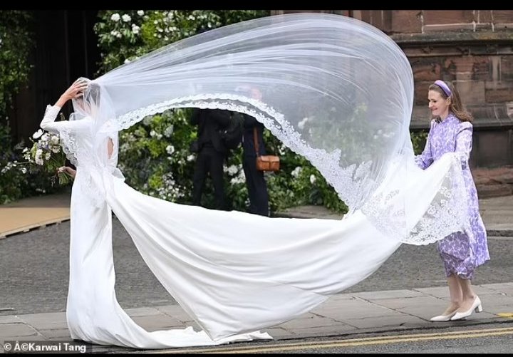 Докато влизаше в катедралата, воалът на булката се развя от вятъра, предизвиквайки въздишки у тълпата.