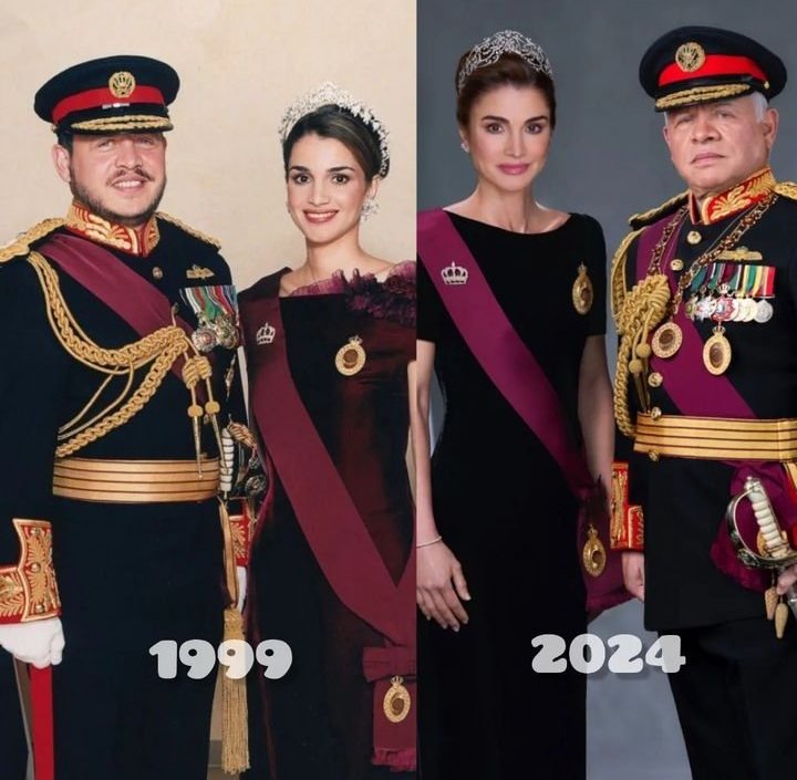 25 години по късно със същата рокля като на един от портретите за старта им като крал и кралица.