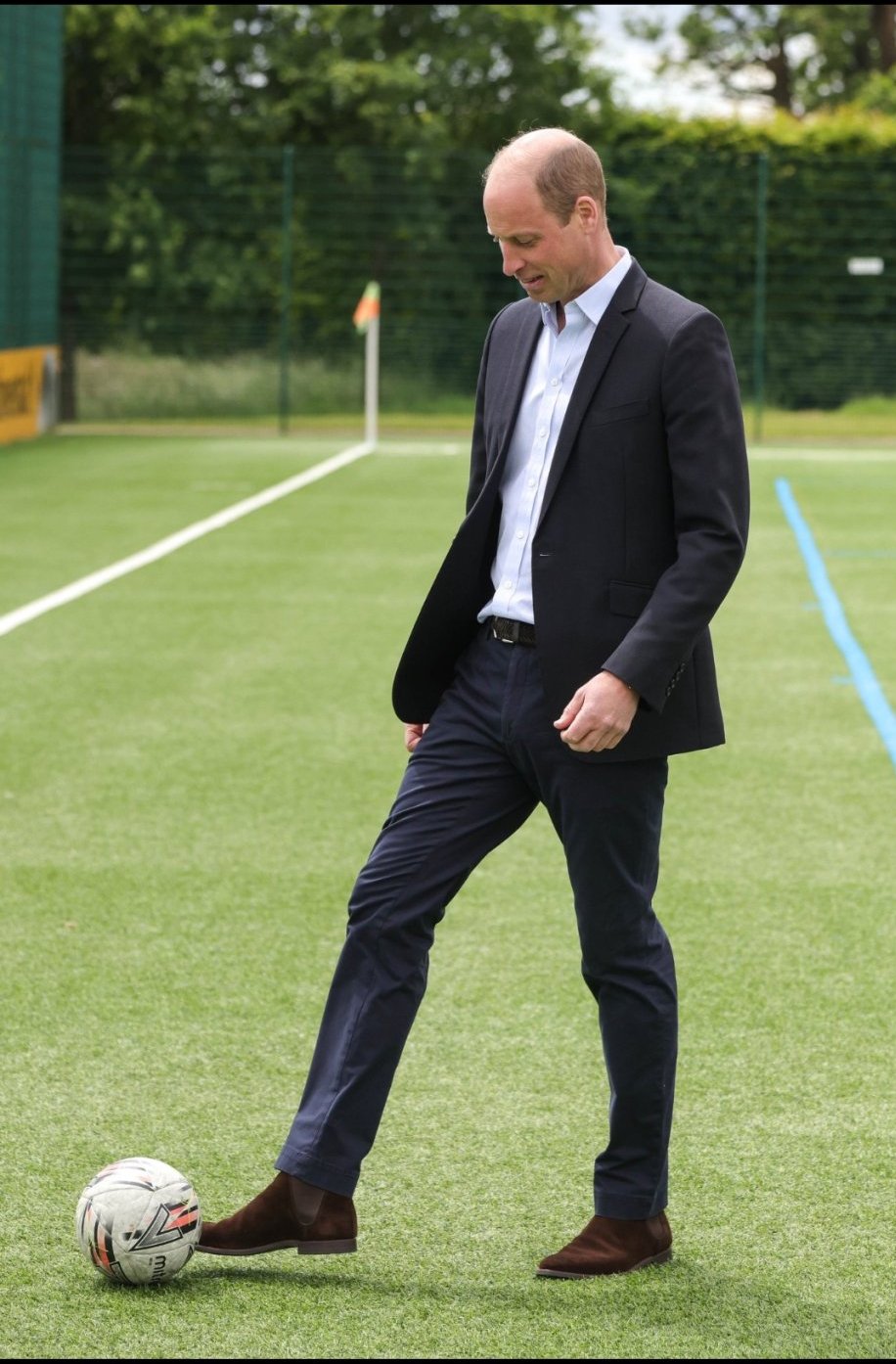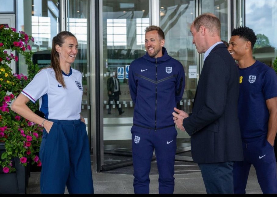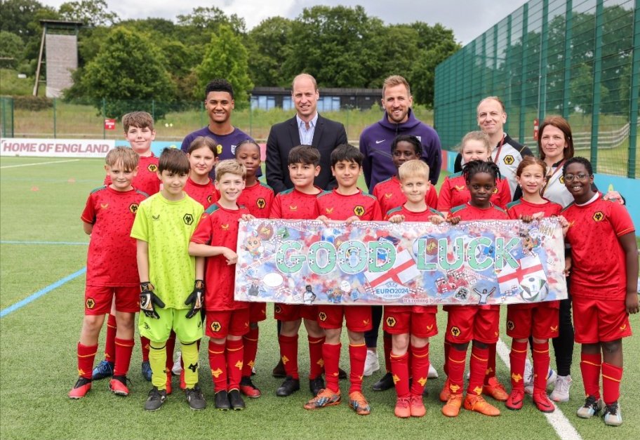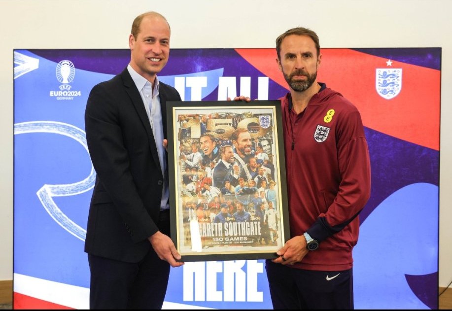 Принцът на Уелс, президент на ФА, по време на посещение в Сейнт Джордж Парк, за да пожелае късмет на мъжкия отбор на Англия преди турнира UEFA EURO 2024 в Германия. Той  се срещна с отбора, за да връчи фланелки на всеки от 26-те играчи, избрани за националния отбор на Англия.