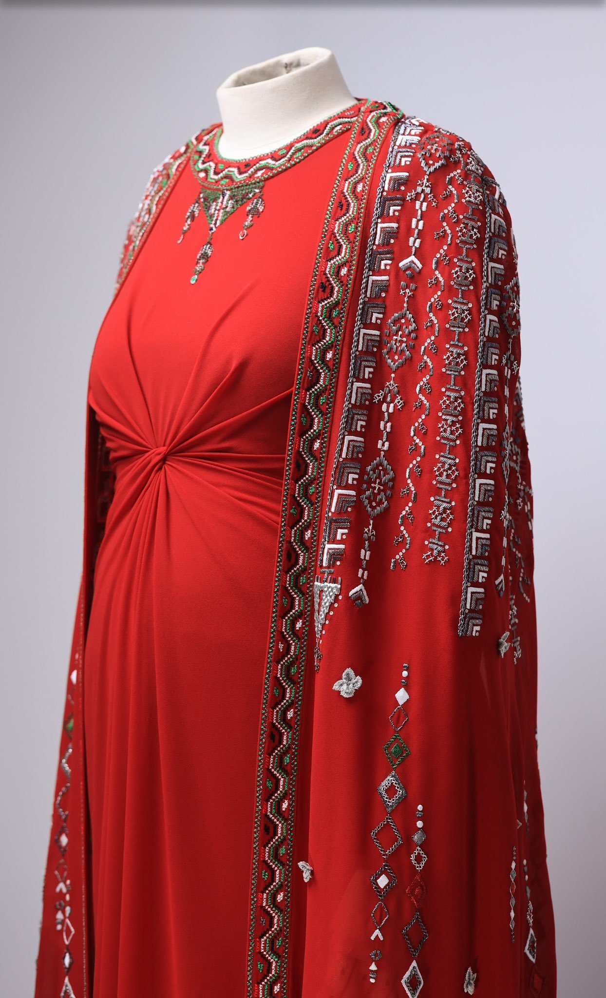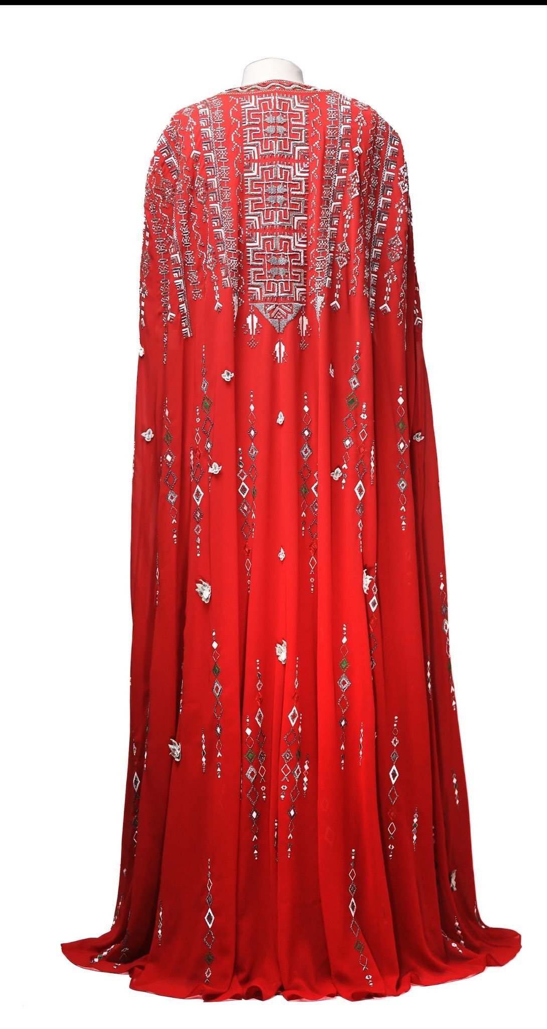 йордански жени занаятчии. Дизайнът, чието изпълнение отне повече от 950 часа, включваше както вековни йордански техники, така и 3D бродерия с подписа на @honaydaofficial в цветовете на