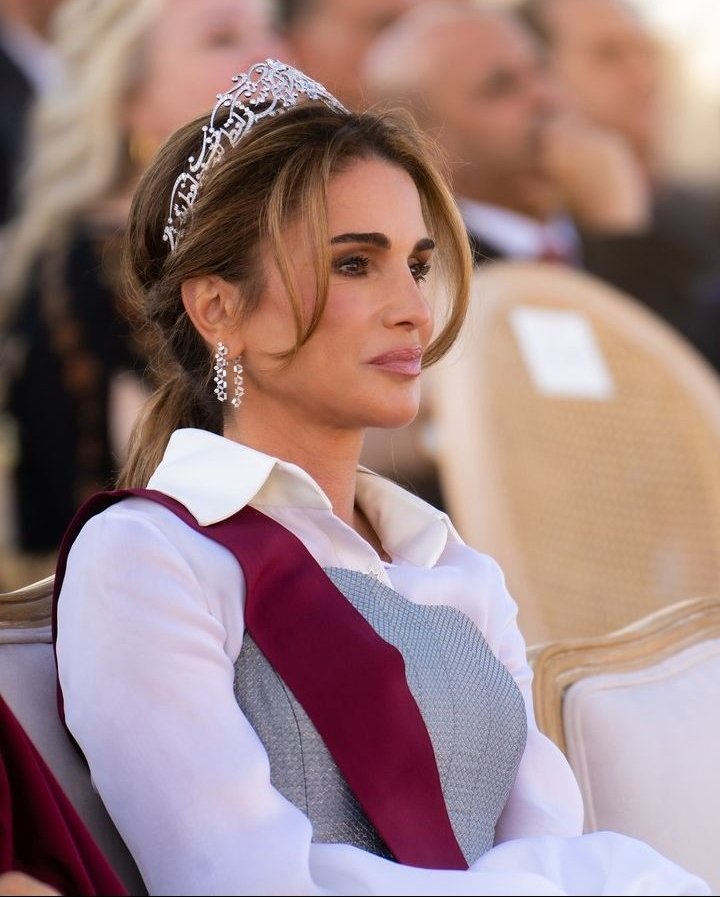 Детайлите за тоалета на Рания от йорданският дизайнер Лейт Алмалуф.