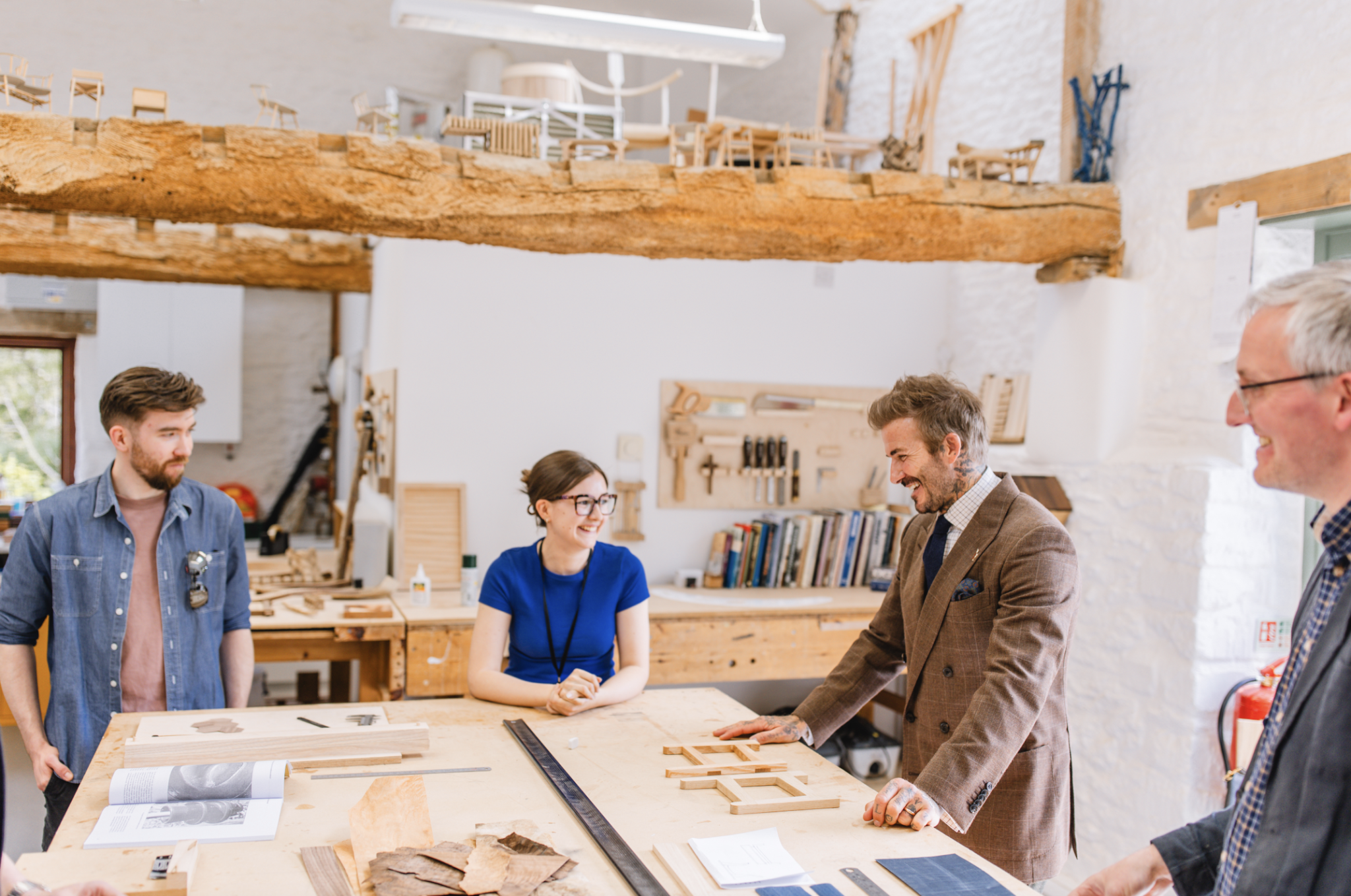 По време на срещата им в Хайгроув, Бекъм е посетил стипендианти в дърводелския и модел сектор. Фондацията на Краля е направила партньорства с най-водещите имена в модния сектор - модни къщи като Шанел, например.