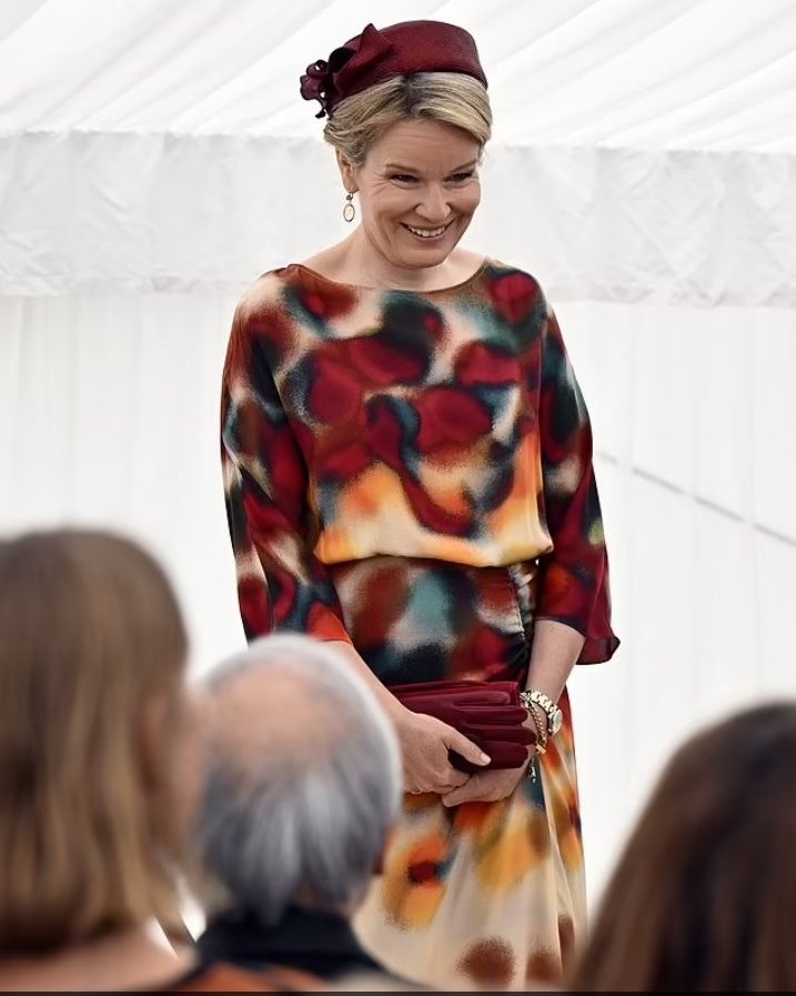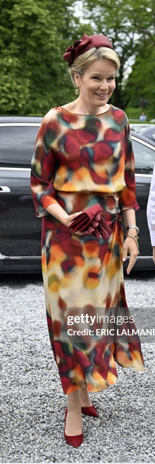 Най-накрая рокля, в която Матилде не изглежда огромна. Не ми харесва дължината, но десенът макар и по-скоро есенен е много хубав и ѝ отива. Малко повече грим не би навредил, изглежда бледа, поне червило.