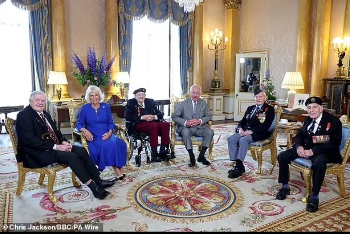 Кралят и кралицата са се срещнали с D-day ветерани в Бъкингамския дворец преди предстоящата възпоменателна церемония в четвъртък.