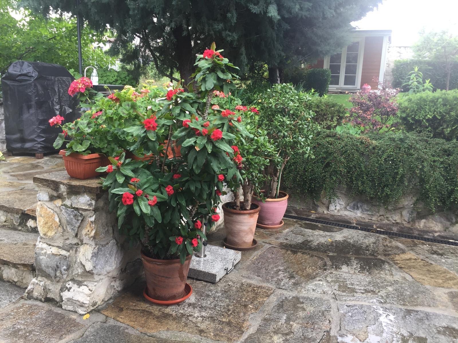 Момичета, ще режа от височината на Исусовия си венец. Ако някой иска , да ми пише. Става висок, голям, с едри листа и кичести цветове. Ето го за припомняне. Този е на 7 г сигурно. От 10 см клонче съм го отгледала.