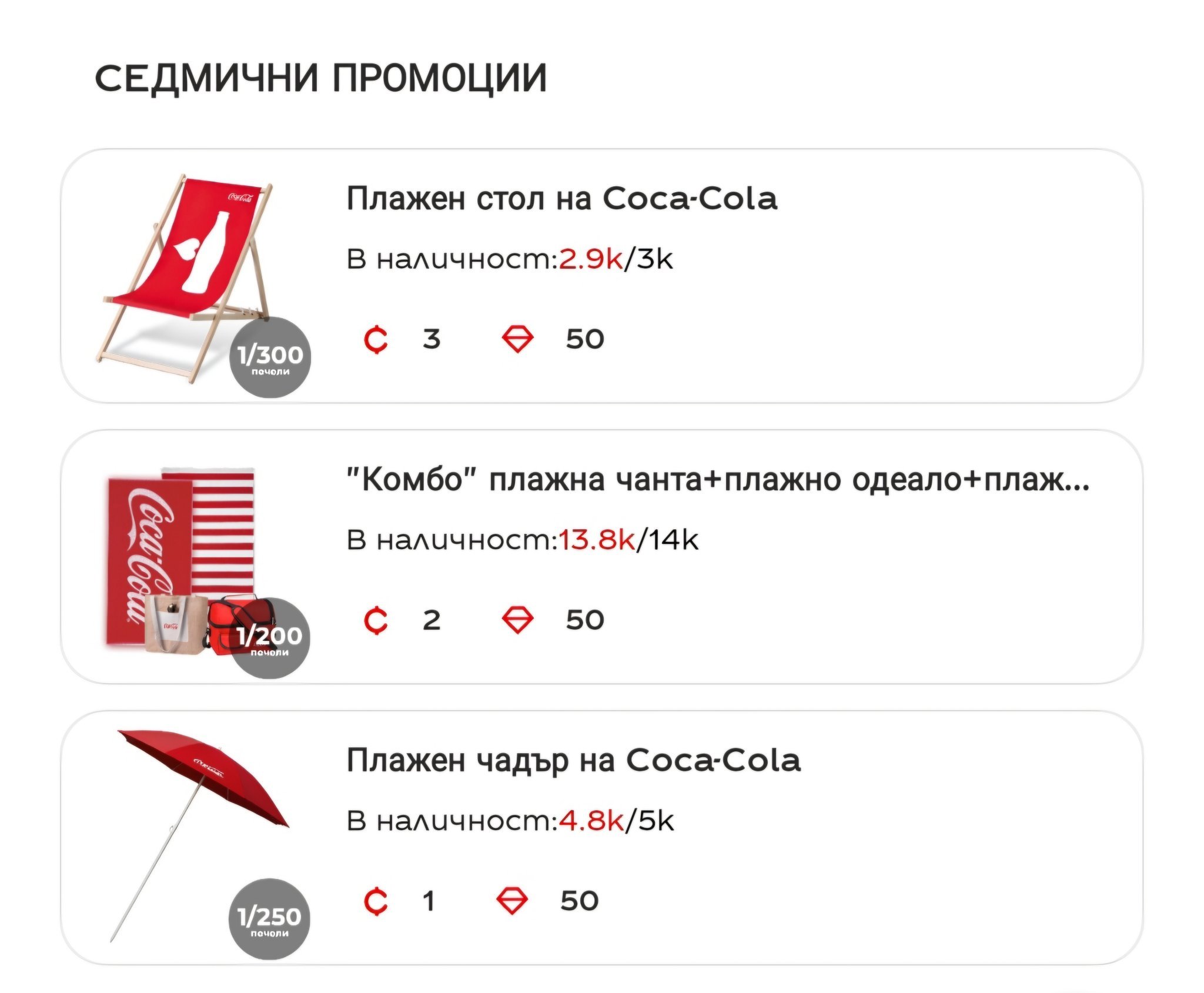 🎁 1 от 10бр. Плажен стол "Coca-Cola" ( 3 🪙 & 50 💎 )
