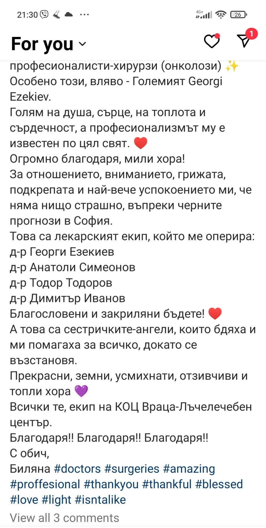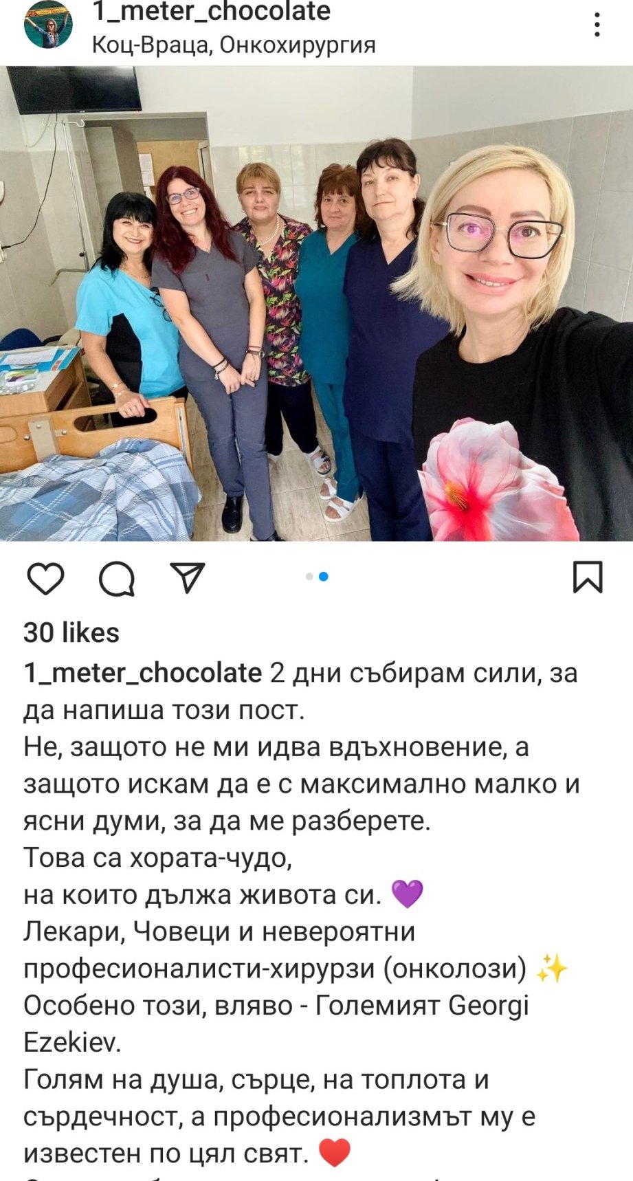 Г-жа Шоколад прибегнала до услугите на онко-хирурзи. Чудя се как така мъжът й, великият лечител, не я е изцерил.