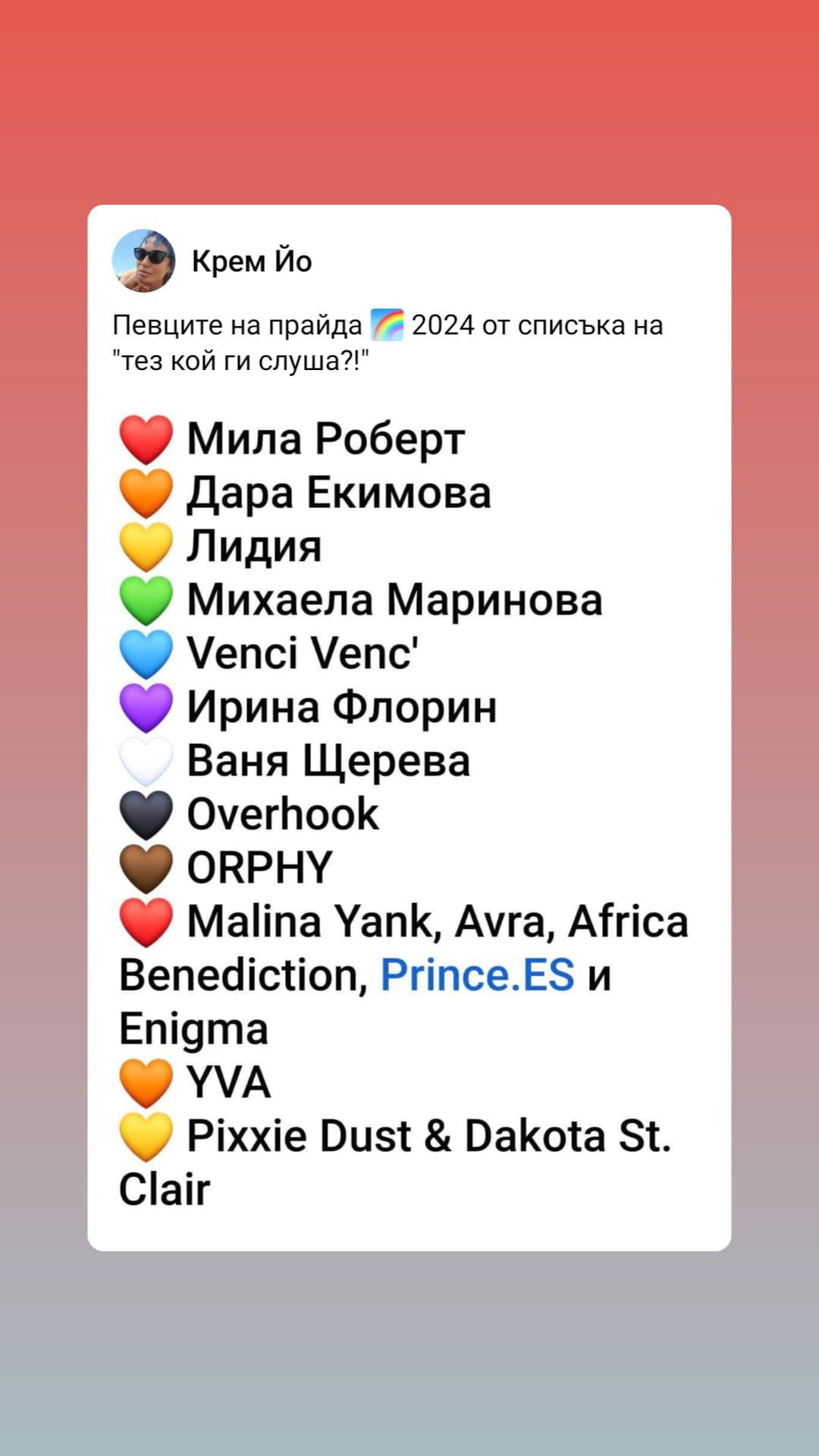списък на певците от прайда в София