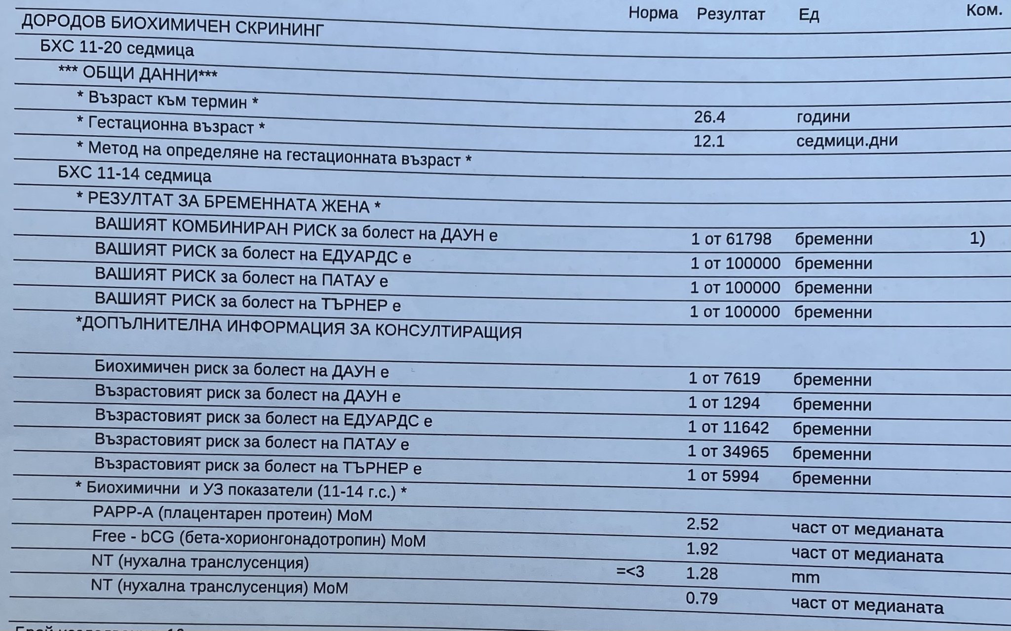 Vesi.K, не се шашкай предварително. БХС не е диагностично изследване, а само оценка на риска. Изчакайте резултата от пренаталния.