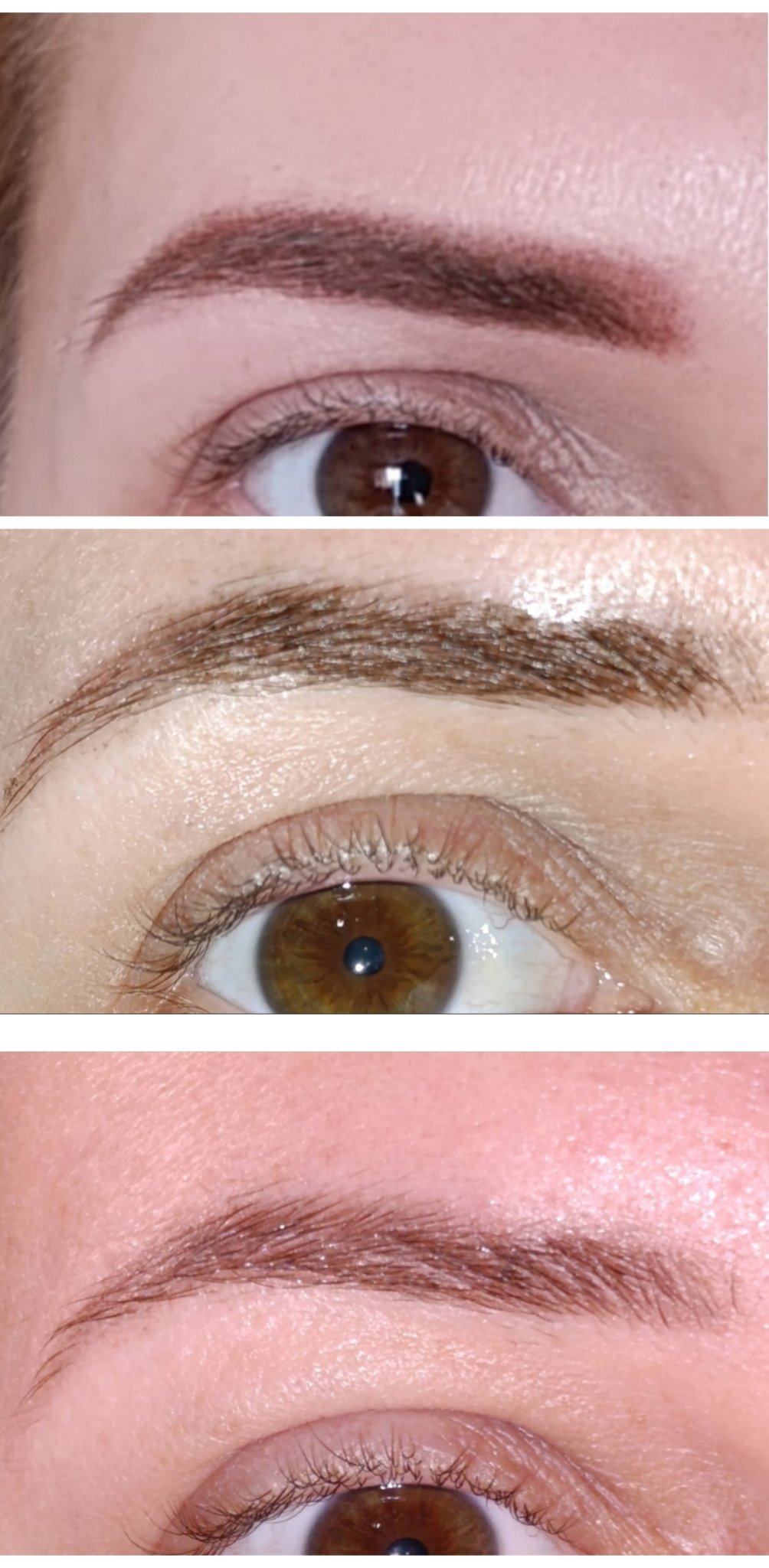 1ви, 4ти и 7ми ден, предстои ретуш. Спазвах стриктно препоръките - мазане с чист вазелин сутрин и вечер и при миене на лицето не съм ги натискала. Не са ме сърбели. Сякаш пигмента падна или е много светъл или просто е нормално така при първа прецудура, нямам си на идея (нали ми е за първи път😁)