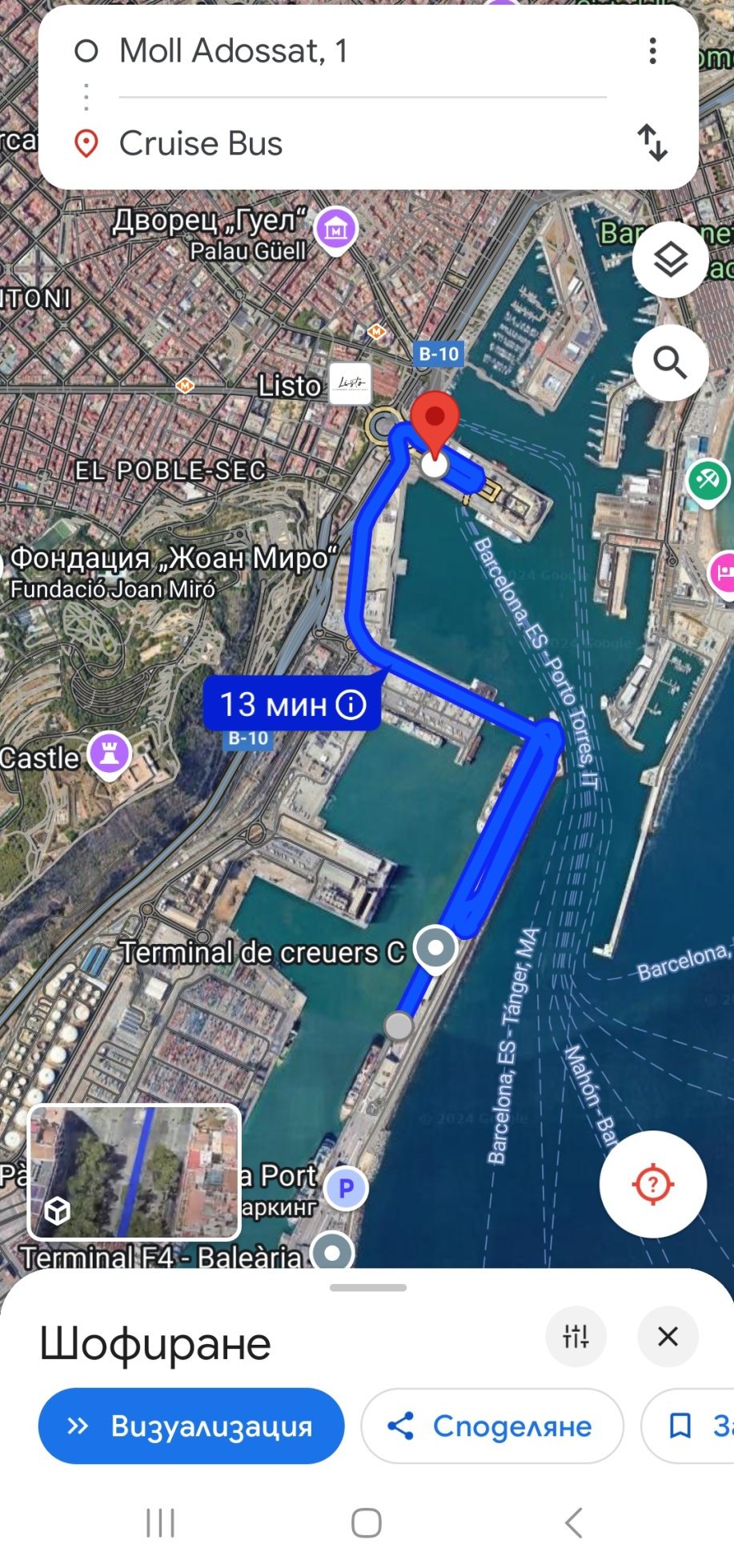 Има и се нарича Aerobus, върви от двата терминала на летището до площад Каталуния, а от там с градски транспорт или пеш по улица Ла Рамбала да я разгледате че е интересна, ще излезете на статуята на Христофор Колумб и от там до порта не са много по моста. Вижте на гугъл мапс и преценете. Иначе такситата освен тарифа на километър имат и допълнителна която начисляват в края на пътуването. Мисля, че от летището до круиз терминала е с фиксирана цена от 25-30евро на автомобил, без значение колко човека сте. Аеробуса беше около 7 евро на човек/по спомени/.