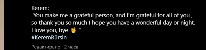 Един поздрав лично от Керем! Какво по-хубаво начало на деня!