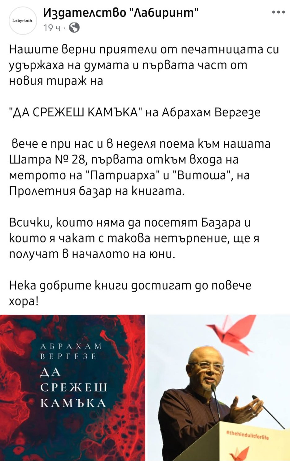 Знаете ли кога ще бъде на пазара новото издание на "Да срежеш камъка"? От издателството бяха обявили за края на май, но още никъде не я намирам като "при-ордър" дори.