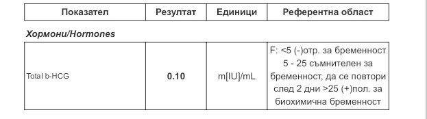 Здравейте, момичета! Както и се очакваше след негативния уринарен тест - резултатът е отрицателен. Ма тооолкова е отрицателен, че аз наистина на 1.56 на 7-ми ден се радвах.