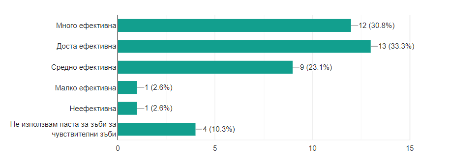 "Ако използвате паста за зъби за чувствителни зъби, как я оценявате по отношение на ефективност?"