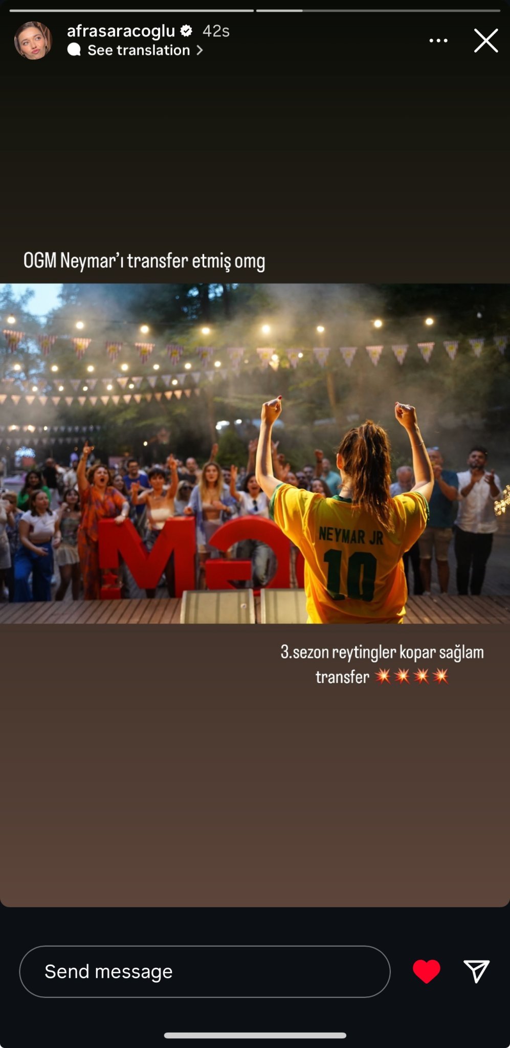 Нека си почине целия екип на сериала и актьори, и сценаристи , режисьори , друг персонал...И нека наесен ни изненадат с наистина нещо ново и стойностно ! Весело лято и на нашите любимци Афра и Мерт !