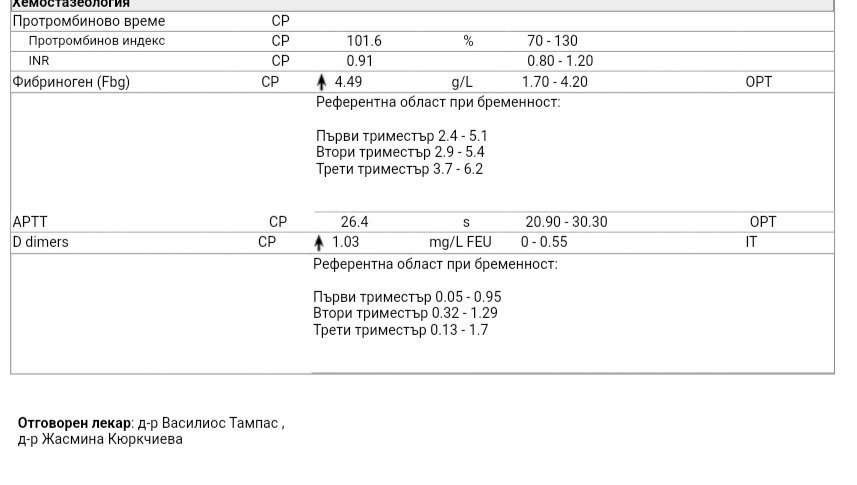 Според мен антиХа е добре, проф. Паскалева в НКБ иска да е между 2 и 4. Д-димер и фибриноген също са добре. Щом и кръвотокът е наред, значи няма място за притеснение 🍀