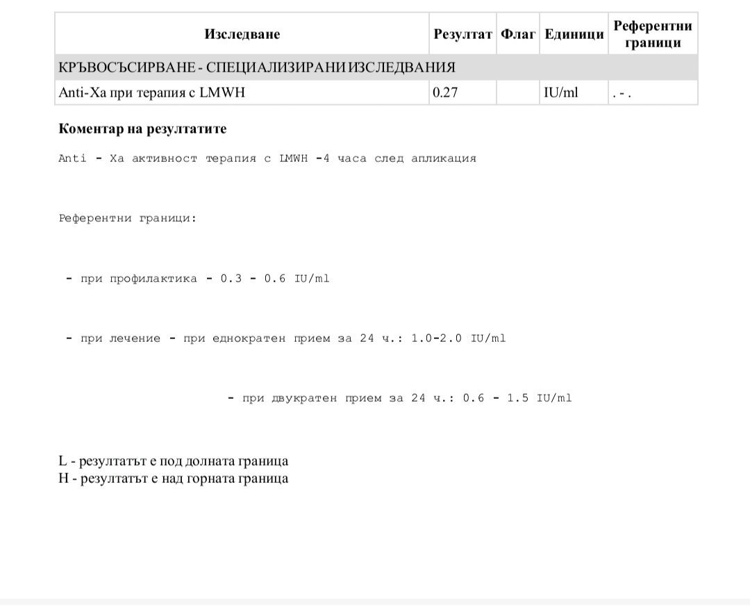 Коагулацията е от 15.10, а анти Х а от днес - 01.11