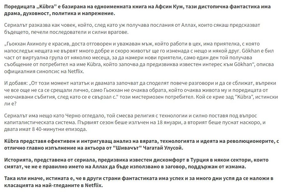 Видях снимката от "Кюбра" и се сетих за статията, която прочетох днес. Авторът е испански журналист. Извинете ме, че я пускам като  скрийншот, но сайтът не ми разрешава да я копирам.