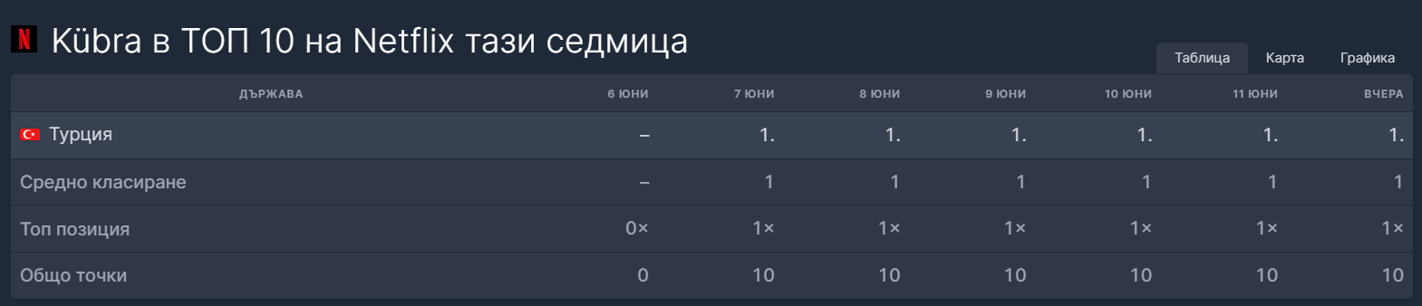 Кюбра 2 вече 6 дена е на първо място в Нетфликс Турция.