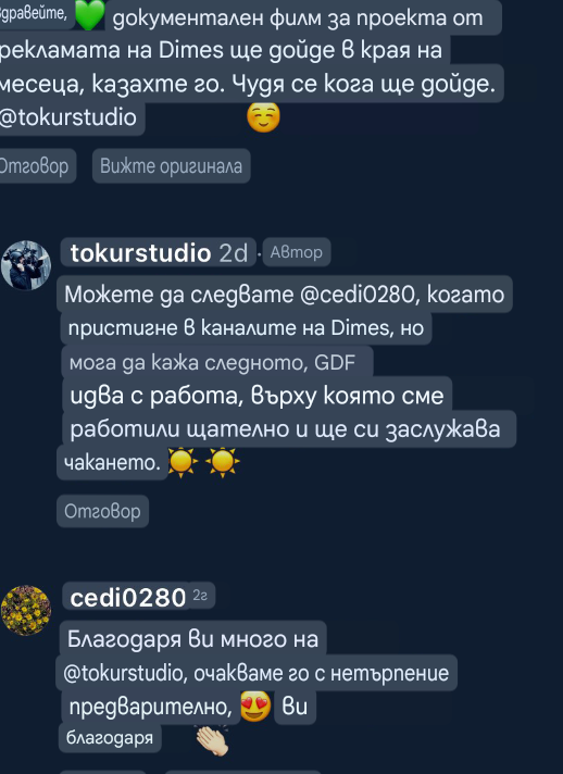 Чака ни документален филм за рекламата на Димес.